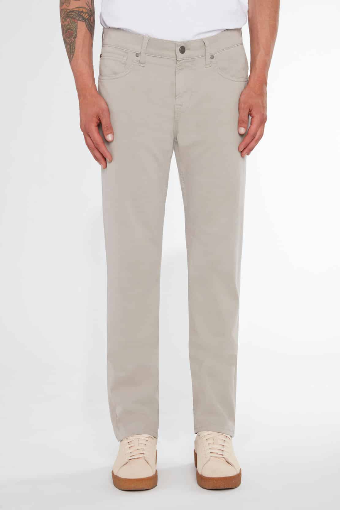 Mooie broek in een grijze kleur van het merk 7 For All Mankind. De Slimmy is opnieuw ontworpen in Luxe Performance stretch-satijn en biedt zowel comfort als stijl. Deze bestseller onderscheidt zich door een middelhoge taille en eigentijdse, slanke pasvorm en kan zowel chic als casual gekleed worden. De broek is uitgevoerd in een 5 pocket met een ritssluiting.