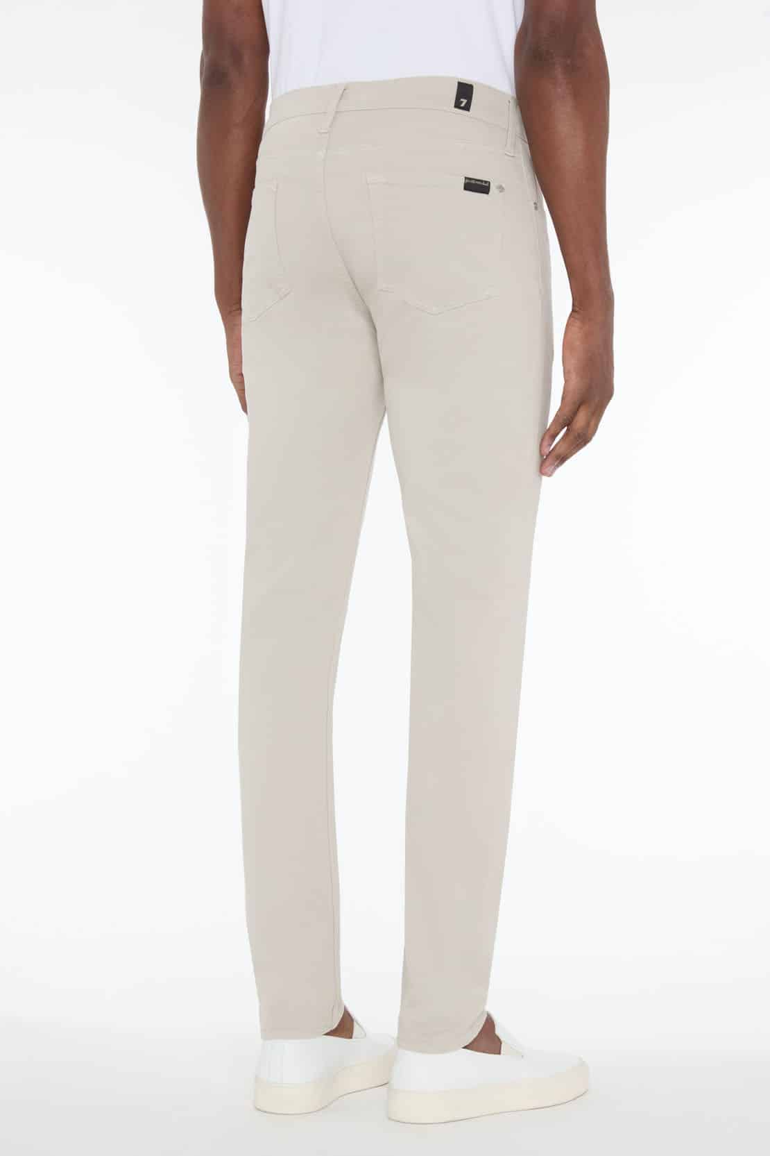 Mooie broek in een beige kleur van het merk 7 For All Mankind. De Slimmy is opnieuw ontworpen in Luxe Performance Plus stretch-satijn en biedt zowel comfort als stijl. Deze bestseller onderscheidt zich door een middelhoge taille en eigentijdse, slanke pasvorm en kan zowel chic als casual gekleed worden.