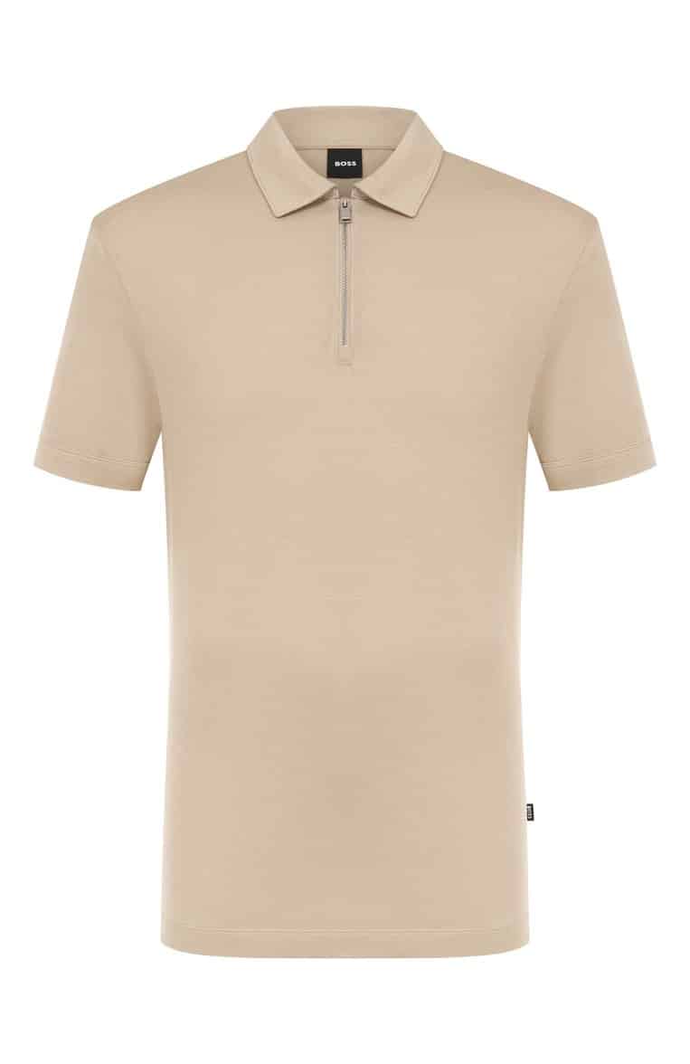 Prachtige polo in een beige kleur van het merk Boss. De polo is gemaakt van lyocell in combinatie met katoen. Hierdoor voelt de polo heerlijk zacht aan en draagt het uiterst comfortabel. De polo is voorzien van een merkvlaggetje aan de linkerzijde, een kraag met ritssluiting en heeft een regularfit pasvorm.