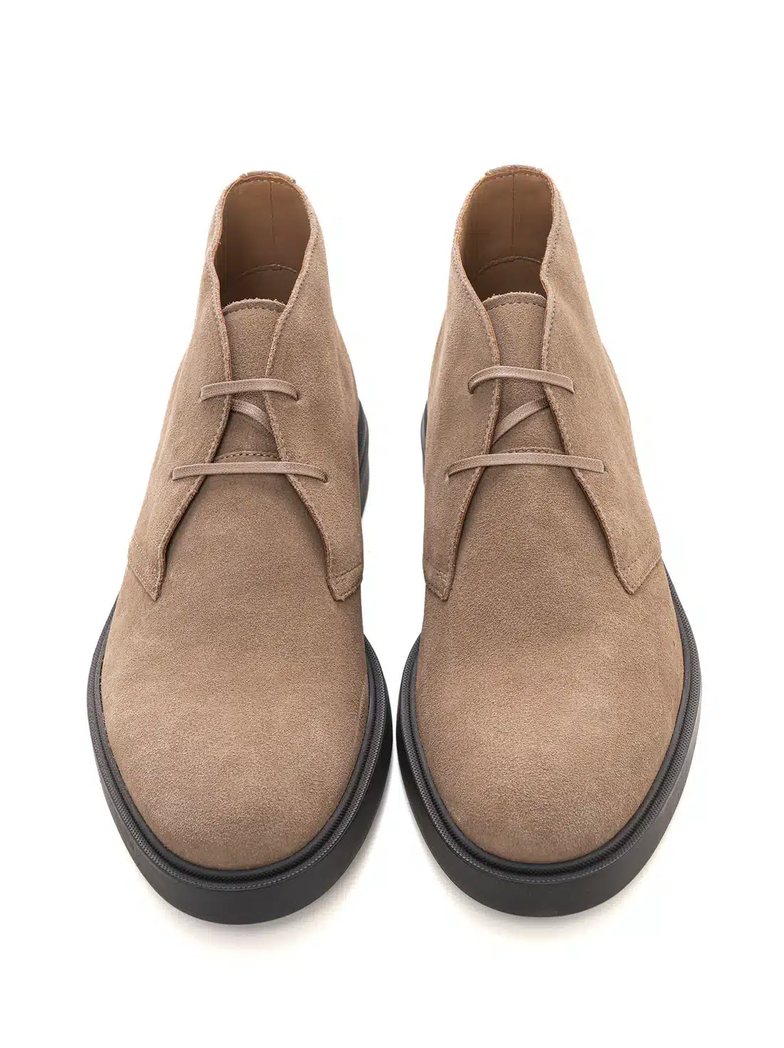 Mooie schoenen in een donker beige kleur van het merk Boss. De boots zijn gemaakt van leer met een suède afwerking en hebben een rubber zool. De schoenen zijn voorzien van een comfortabel voetbed en op de achterzijde staat het merknaam afgebeeld.