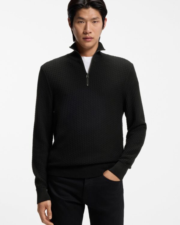 Een elegante trui in een smal model van het merk Boss. Deze beige trui met V-hals is vervaardigd van zachte en ademende scheerwol en afgewerkt met een logovlag aan de gestructureerde zijnaad voor een subtiel merkaccent.