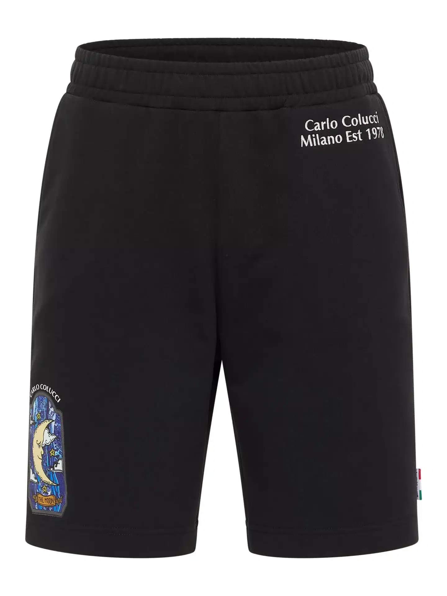 Mooi short in een gebroken zwarte kleur van het merk Carlo Colucci. Het short uit de Tarot-serie combineert modern comfort met mystieke symboliek. Het gedetailleerde tarotmotief geeft de shorts een unieke look die esoterie en stijl harmonieus combineert. Perfect voor iedereen die individualiteit en betekenis aan zijn of haar garderobe wil toevoegen. Van dit item is ook een bijpassend t-shirt verkrijgbaar (Oversized Tarot Black).