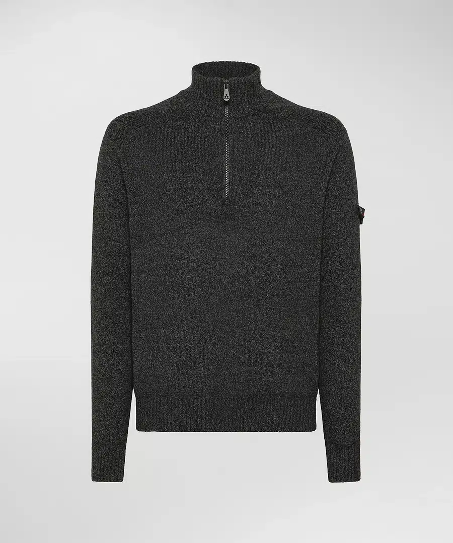 Mooie gebreide trui in een zwarte kleur van het merk Peuterey. De trui is vervaardigt van een gevlochten wolmix met een korte rits en een opstaande kraag. Het verfijnde melange-effect van het garen zorgt voor kleurdiepte en een verfijnde uitstraling. Details zoals de geribbelde kraag, manchetten en zoom versterken de constructie van het kledingstuk en benadrukken de comfortabele pasvorm. Het Peuterey-trilogielogo is met twee delicate knopen op de linkerarm aangebracht. Dit model wordt een geliefde must-have voor het seizoen dankzij de gedurfde en veelzijdige stijl.